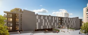 El edificio cuenta con 4 niveles, con un total de 60 unidades de apartamentos de tipologías monoambientes, 1 y 2 dormitorios.